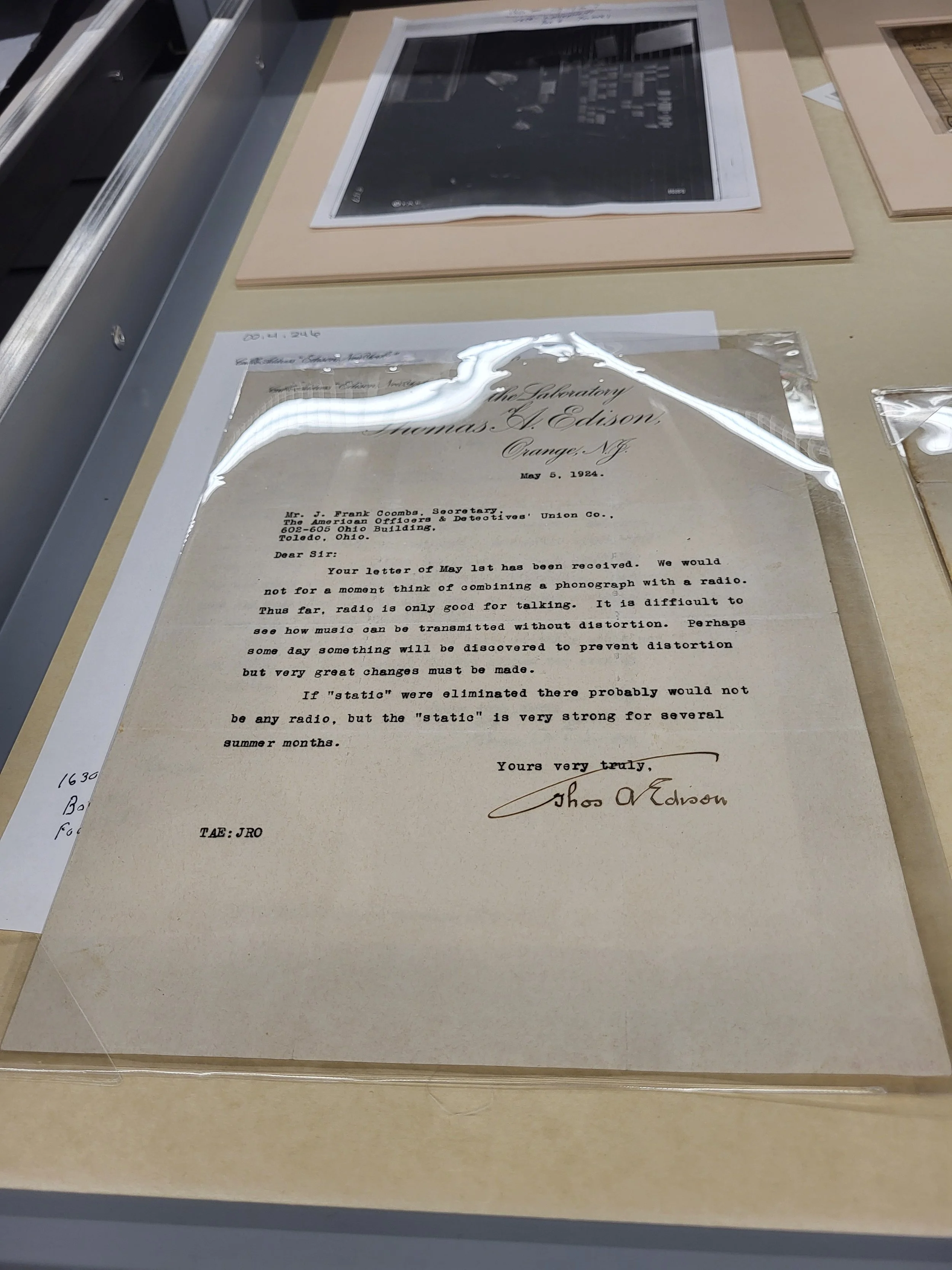 Henry Ford collected many items that are in the archives, including this letter from Thomas Edison.