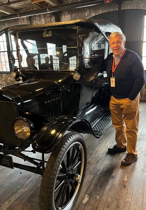 Mike Skinner stands by one of his own Ford treasures that is on loan to the museum. Mike is one of the founding members of the Henry Ford Heritage Association, the historic Ford Piquette Plant and the Piquette Model Ford Club. He is THE “Model volunteer and organizer” personified!